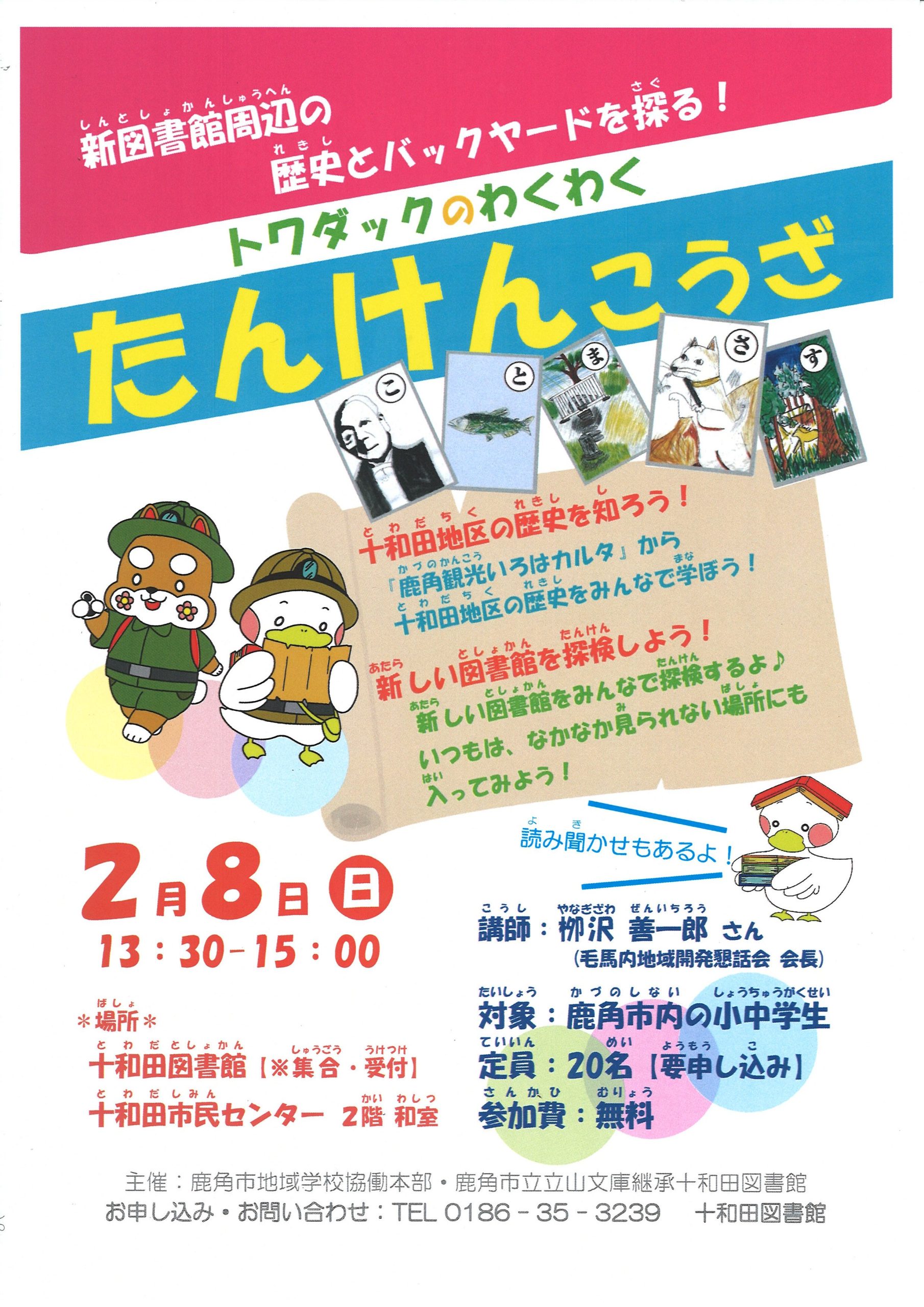 【十和田図書館】2/8(日)トワダックのわくわく たんけんこうざ