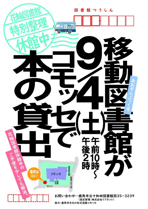 【移動図書館】9月4日(土)コモッセ出張貸し出し