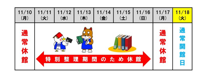 【特別整理期間休館】令和7年11月10日(月)~17日(月)