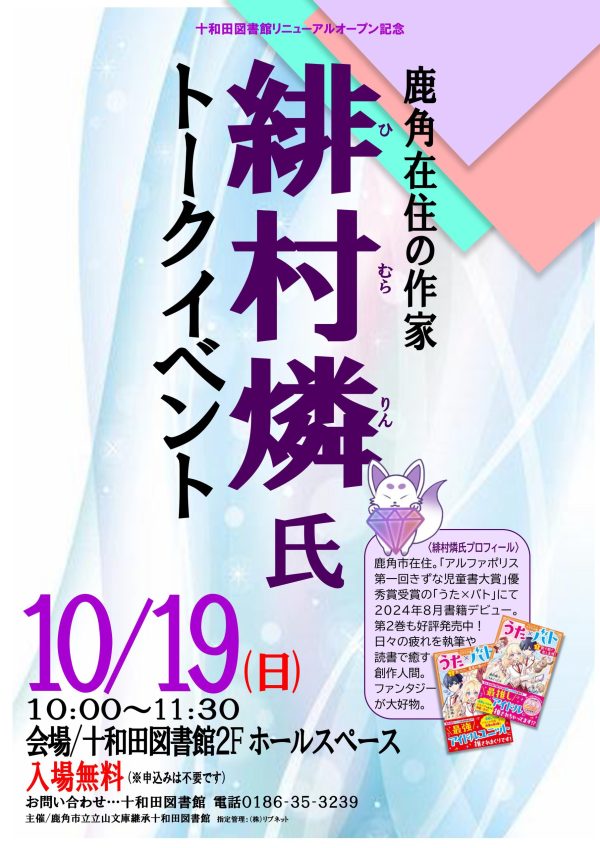 【十和田図書館】10月19日(日)10:00~11:30 緋村 燐氏トークイベント